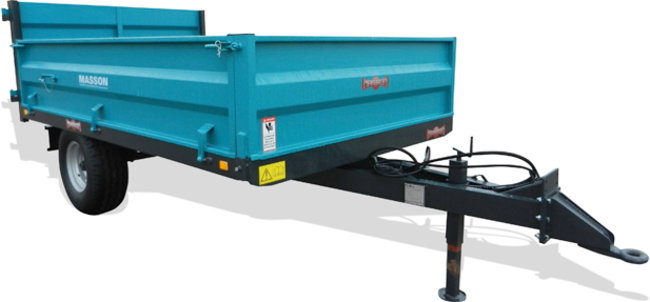 Bennage : par vérin hydraulique à étage, commandé par la prise d'huile du tracteur