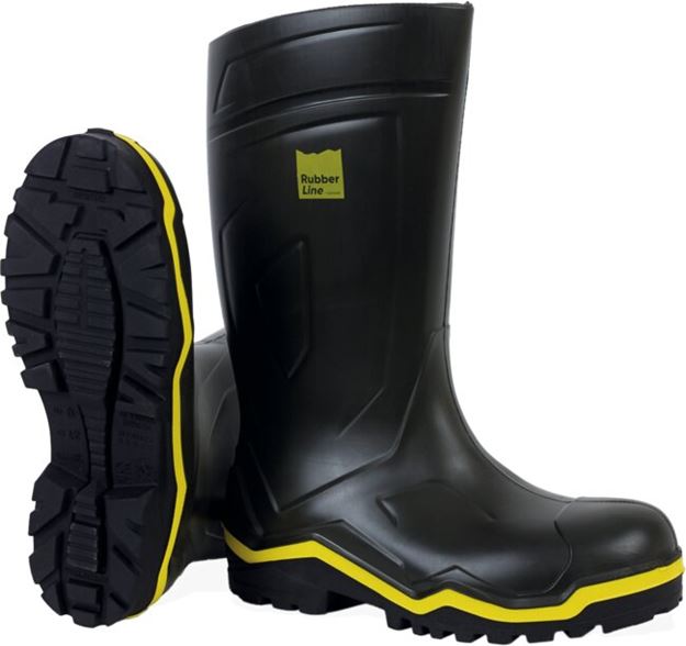 Bottes durables et résistantes en Solithane vert, légère, antibactérienne, isolant au froid (-50°C) et à la chaleur (+150°C), semelle en caoutchouc avec liseré jaune résistante aux lisiers et hydrocarbures. Norme EN ISO 20347 : 2012 O4 SRC CI